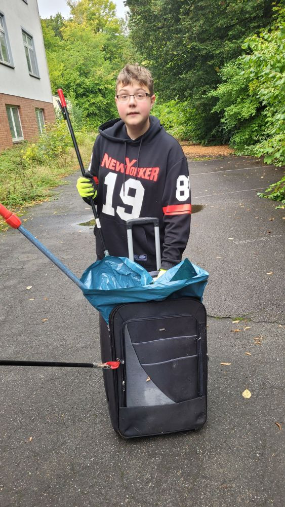 Die Sehusaschule hat diesen internationalen Tag zum Anlass genommen, bereits im Vorfeld aktiv zu werden: In einer von den Buddys der Schule organisierten Aktionswoche zogen die Schülerinnen und Schüler aller Klassen los, um ihre nähere Umgebung von Müll zu befreien. Ausgestattet mit Müllgreifern und stabilen Tüten, die der örtliche Baubetriebshof zur Verfügung stellte, machten sie sich auf sogenannte „Müllspaziergänge“. Mit großem Eifer sammelten die Kinder und Jugendlichen alles ein, was nicht in die Natur gehört – von Glasflaschen über Getränkedosen bis hin zu Plastikverpackungen. Sogar ein ganzer Koffer voll mit leeren Flaschen wurde im Unterholz gefunden.
