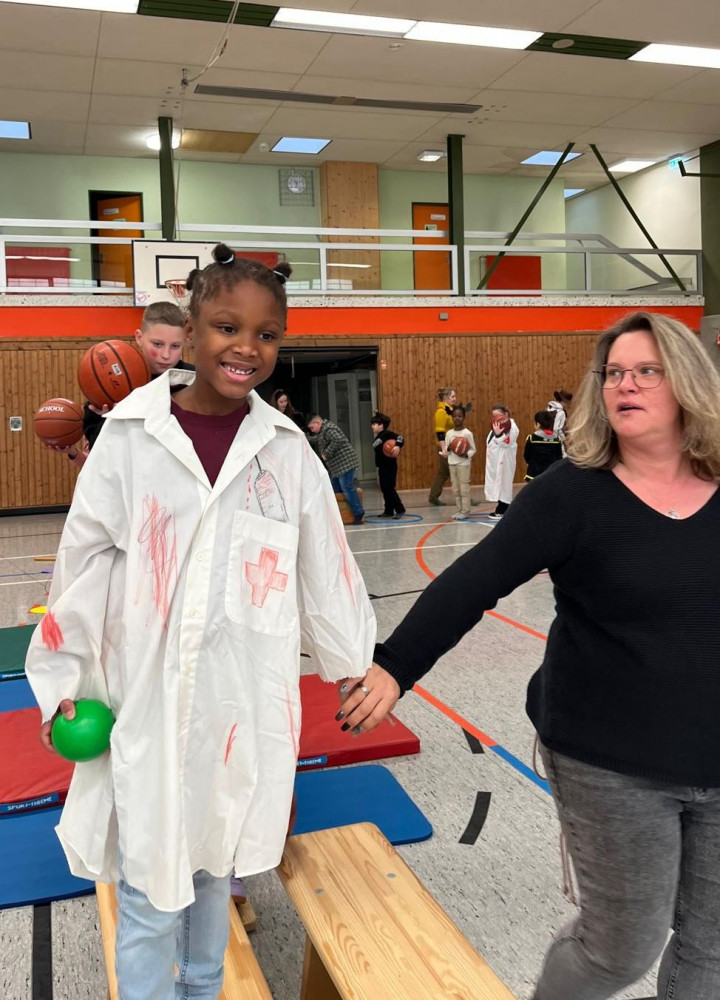 Überall liefen verkleidete Kinder herum – Geister, Skelette, Fledermäuse, Zombies, Gespenster, Piraten, Krankenschwestern und viele andere gruselige Kreaturen. Manche Kostüme waren so echt, dass man sich richtig erschrecken konnte!